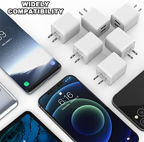 6Pack USB Wall Charger, iGENJUN 2.4A Phone Charger Dual USB Port Cube Power Plug Adapter Fast Wall Charger Block Compatible with iPhone 14/14 Pro/13/13 Pro, Samsung Galaxy, Pixel, LG, Android-White
